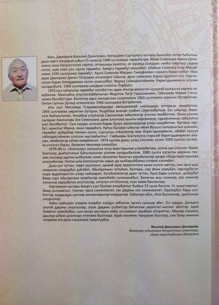 «Дьиэ кэргэн диэн тугуй?» — диэн ыйытыыга, саамай судургу эппиэт: аҕа, ийэ уонна оҕо диэн буолар. Хомойуох иһин, куруук маннык буолбат: сорох дьиэ кэргэҥҥэ аҕалара, сорохторго ийэлэрэ, сорохторго оҕолоро суох буолар. Дьиэ кэргэн диэн киһи ахсаана буолбатах. Дьиэ кэргэн диэн сыһыанынан холбоһо сылдьар дьоннор. Чуолаан эттэххэ, сыһыан дьиэ кэргэни үөскэтэр. Дьиэ кэргэн хаачыстыбата сыһыан хаачыстыбатынан быһаарыллар. Онон кэргэннии олохпутун бука бары үрдүктүк тутуохтаахпыт, ыал дьон бэйэ-бэйэбитигэр бэриниилээх буолуохтаахпыт. Дьон дьиэ кэргэн тэринэн төрүөхтээхтэр — ууһуохтаахтар, элбиэхтээхтэр, сири толоруохтаахтар, бас билиэхтээхтэр. Дьиэ кэргэн күнүгэр аналлаах “Өтөх төҥүргэстээх, сурт кэриэстээх, удьуор кыымнаах” диэн мероприятияны Маҥаас нэһилиэгин модельнай библиотеката бүгүн, ыам ыйын 15 күнүгэр, күнүс 3 чаастан ыытта. Мероприятия сүрүн хайысхаларынан, икки үлэ былааннаммыта. 1. “Дьиэ кэргэммин сахалыы тыыҥҥа иитэбин” – дьиэ кэргэҥҥэ оҕону төрөөбүт тылынан иитии сүрүн сорукпут буолар. Манна 40 – ча сыл педагогическай үлэ ыстаастаах начальнай оскуола учууталынан үлэлээбит, билигин сынньалаҥҥа олорор Петрова Ирина Никитична «О5о ийэ тылын кытта аан маҥнай билсэр, чугасаһар, сайдар бастакы оскуолата — дьиэ кэргэнтэн буолар, ийэ тыл диэн Ийэҕэ тэҥнээх. Оҕону кыра сааһыгар таба тутан, эрчийиэххэ, саҥардыахха наада»,- диэн санаатын эттэ. Сахаҕа «Кырдьаҕаһы хааһахха хаалыы сылдьан сүбэлэт», — диэн муударай өс хоһооно этэринии, эһээ, эбээ, абаҕа, таай дьон — оҕо тыла сайдарыгар көмөлөһөр, сэһэргэһэр муударай сүбэһиттэр. Кинилэрдиин кэпсэтэн оҕо тыла, майгыта, дууһата байар, диэн түмүккэ кэллибит. 2. “Древо жизни” анал программаны билиһиннэрии. Төрүччү үөрэҕэ диэн – өбүгэлэри, төрүттэри үөрэтии буолар. Сэбиэскэй былаас иннинэ сахалар төрүттэрин тоҕустан уон икки көлүөнэҕэ диэри бары билэллэр эбит. Онтон билигин, эдэр көлүөнэ өттө олох интэриэһиргээбэт түгэнэ элбэх. Саастаах өттүлэрэ лаппа интэриэһиргээн, элбэх ыйытыктаах библиотекаҕа кэлэллэр. Ол курдук суругунан тиһиллэн нэһилиэк үгүс дьонун киэнэ, библиотека фона буолан тураллар. Библиотекаҕа төрүччү оҥоруутугар анал программата баар. Бүгүҥҥү мероприятияҕа ол программаны билсии буолла. Экраҥҥа көрдөрөн туран, Зоя Семеновна Ажигалова – Дмитриева төрүччүтүн ырытан, оҥорон көрдүбүт саҕалааһынын. Олус интэриэһинэй диэн, махтаннылар.Бэйэлэрэ төрүччүлэрин кинигэлэрин аҕалан көрдөрдүлэр. Петрова Наталья Васильевна аҕата Василий Данилович Дмитриев таһаартарбыт төрүччүтүн кинигэтин ырытыстыбыт. Василий Данилович Маҥаас нэһилиэгэр улуутуйан үөскээн олорор Хомдьоо аҕатын ууһуттан төрүттээҕин биллибит.