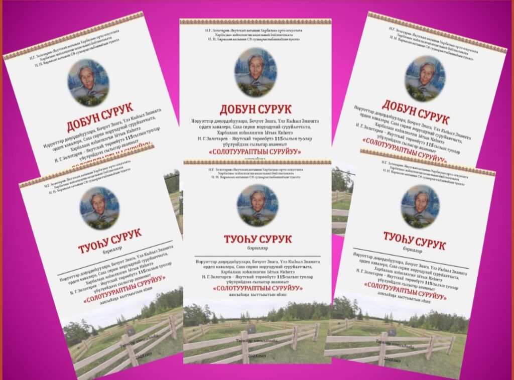 Норуоттар доҕордоһуулара, Бочуот Знага , Үлэ Кыһыл Знамята орден кавалера, Саха сирин норуодунай суруйааччыта, Үөһээ Бүлүү улууһун, Харбалаах нэһилиэгин Ытык Киһитэ Н.Г. Золотарев — Якутскай төрөөбүтэ 115 сылын туолбут үбүлүөйдээх сылыгар анаммыт «Солотуураптыы суруйуу» аахсыйаҕа Маҥаас орто оскуолатын үөрэнээччилэрэ, үлэһиттэрэ кытыннылар.