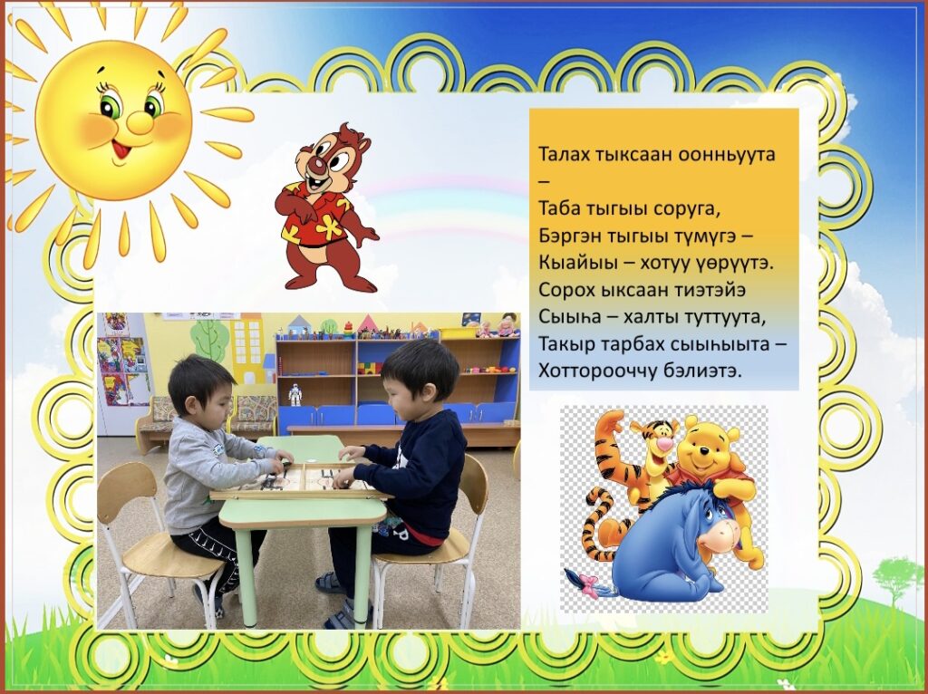 Чуораанчык» уһуйаан иитиллээччилэрэ, остуол онньуутун билистилэр. Аныгы онньууну, сахалыыга майгыннатан оонньоотулар.