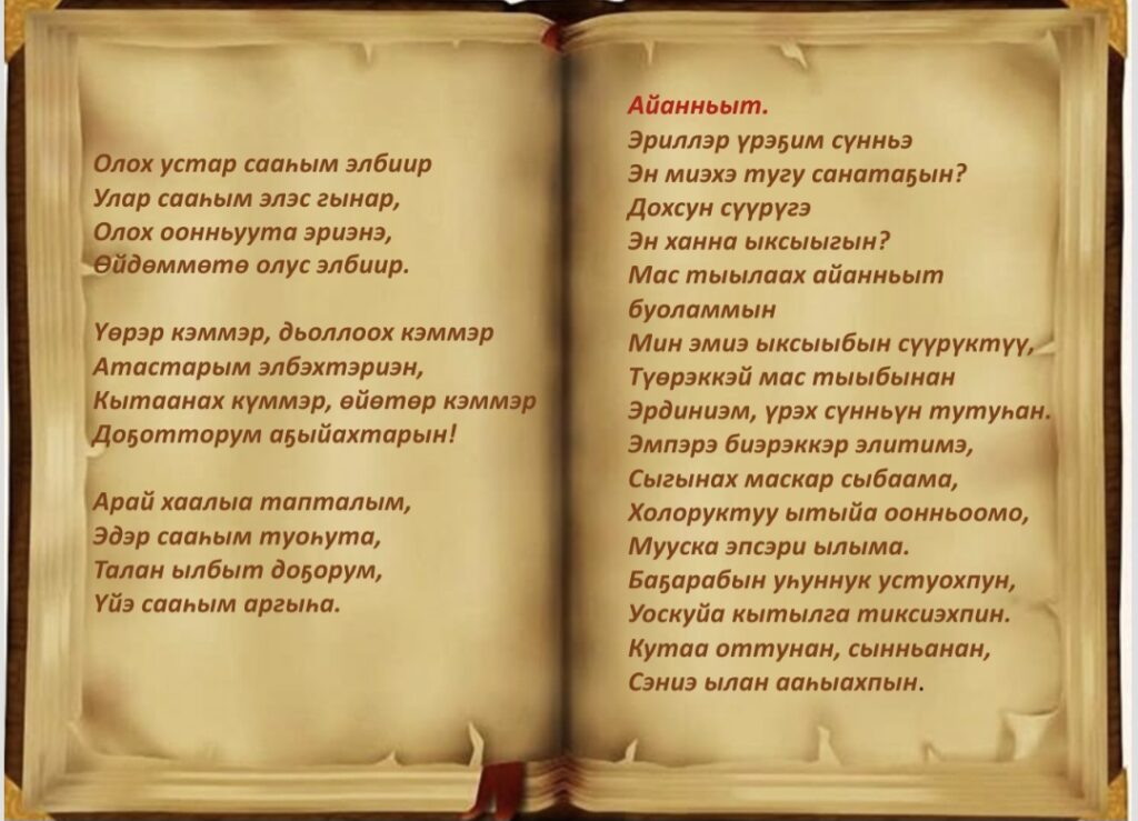 Айар талаана аһыллан баһаан элбэх хоһоону айан хаалларбыт. Ол хоһоонноруттан бэчээттээтибит.